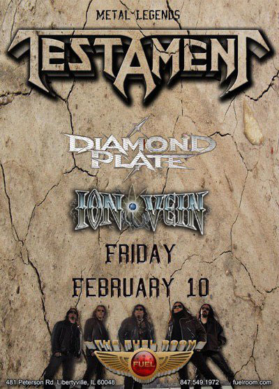 Chicago based metallers ION VEIN will be making their return to the stage in a big way, opening for the legendary TESTAMENT at The Fuel Room in Libertyville, IL on Friday, February 10th. In a statement released from the band: “We’re very excited to announce that our first show in support of IV v1.0, and our debut show with Scott and Rob, will be sharing the stage with the mighty TESTAMENT and Chicago’s upstart thrashers DIAMOND PLATE. This is the perfect way to kick the IV v1.0 release cycle into high gear and we can’t wait to dial everything up live with all of you once again!”