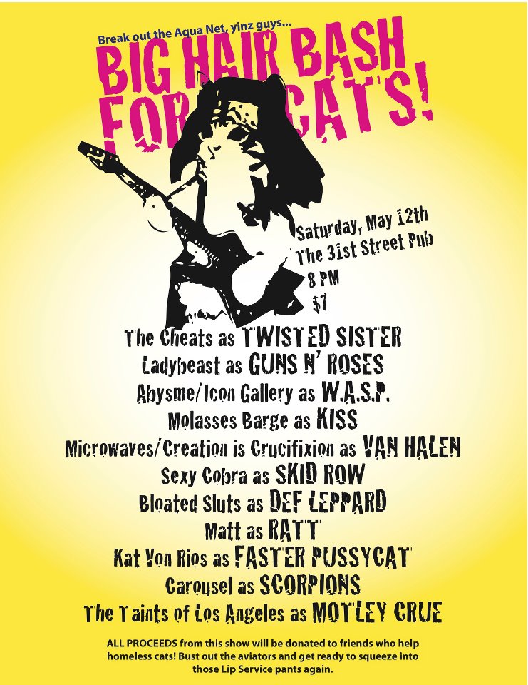 21+ only, $7 cover, all proceeds will be donated to help homeless cats in the Pittsburgh area!