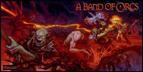 We wish to recreate this epoch in metal music with our own picture disc set. Records, due to their relatively low demand (taking the music industry as a whole) require a king’s ransom to forge an order of 500 sets, so we are about to embark on another kickstarter campaign to raise the required gold. The great thing about kickstarter is that it removes the middle-human (i.e., record labels) from the process and puts A Band of Orcs in a direct relationship with our fans. In other words, if the fans hail what we’re doing enough they will fund the project because they want to be part of forging the metal legacy that is A Band of Orcs.