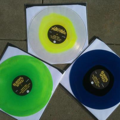 Well, the second thosand records also got snapped up pretty quickly — at this time there are still a few of the “Highlighter Yellow” and the green-yellow-blue “Striped” available, but less than a dozen of those are left! The “Toxic Spill” variety from the second batch is completely gone.