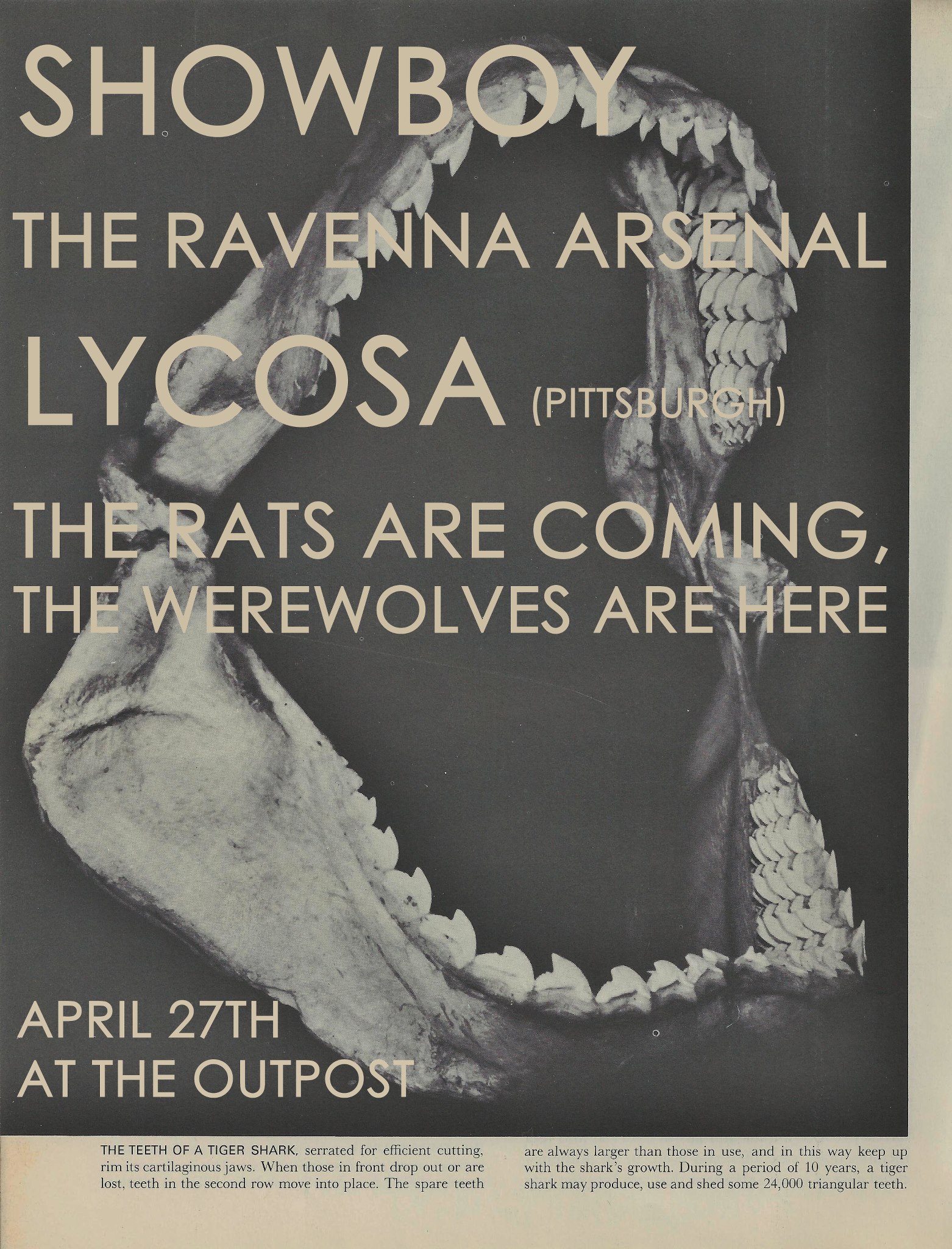 Lycosa will be appearing at The Outpost in Kent OH this Saturday (27 April 2013), along with a handful of heavy Ohio bands: Showboy, The Ravenna Arsenal, and The Rats are Coming, the Werewolves are Here. Check out the full details right here.