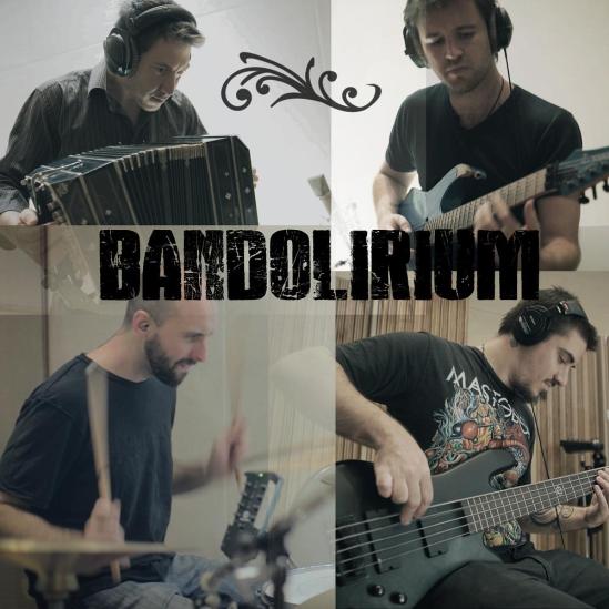 Argentinian bandoneonist, teacher, and composer Amijai Ben Shalev had the idea to incorporate the instrument into the context of progressive metal, and so gathered together fellow porteños Marcos de Cristobal (guitar), Matias Brandauer (bass), and Marcos Edwards (drums), forming Bandolirium in 2016. As a taste of how this unique style would fit within the structure of metal music, the band released their rendition of “Por Quien Doblan las Campanas” (or “For Whom the Bells Toll”) in an instrumental arrangement, where the bandoneon sometimes slips into the background playing chords along with the rhythm guitar parts, but elsewhere produces a tango-flavored melody in the place of the vocals from the original song. Feel free to check out this recording right here, then continue reading as we address the group’s self-titled debut record which they’ve put out about a month and a half ago …