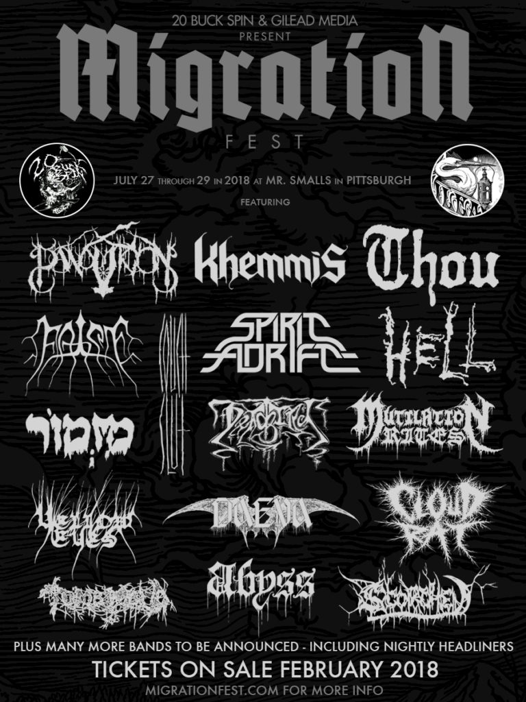 Following the success of Wisconsin’s Gilead Fest in 2012 and 2014, the organizers (Gilead Media) hooked up with west-coast label 20 Buck Spin to continue the biennial tradition, kicking off the new Migration Fest in Washington state in 2016. Naturally, the next edition of this festival would be slated for 2018, and the labels have jointly announced that it will be held at the highly-esteemed Mr. Smalls Theatre in Millvale, PA — immediately adjacent to Pittsburgh.