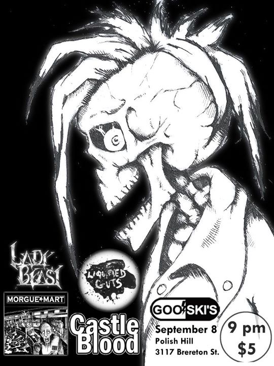 Come celebrate the release of Liquified Guts‘ brand-new full-length album — feast your eyes on the 70’s AM radio inspired cover (pictured below), then feast your ears on the putrid hideousness lurking within! Plus, get another chance to see the newly reunited Castle Blood (if, for example, you find yourself attending a different show Friday night), along with the incredible talents of MorgueMart and Lady Beast! Just $5 to get in the door!